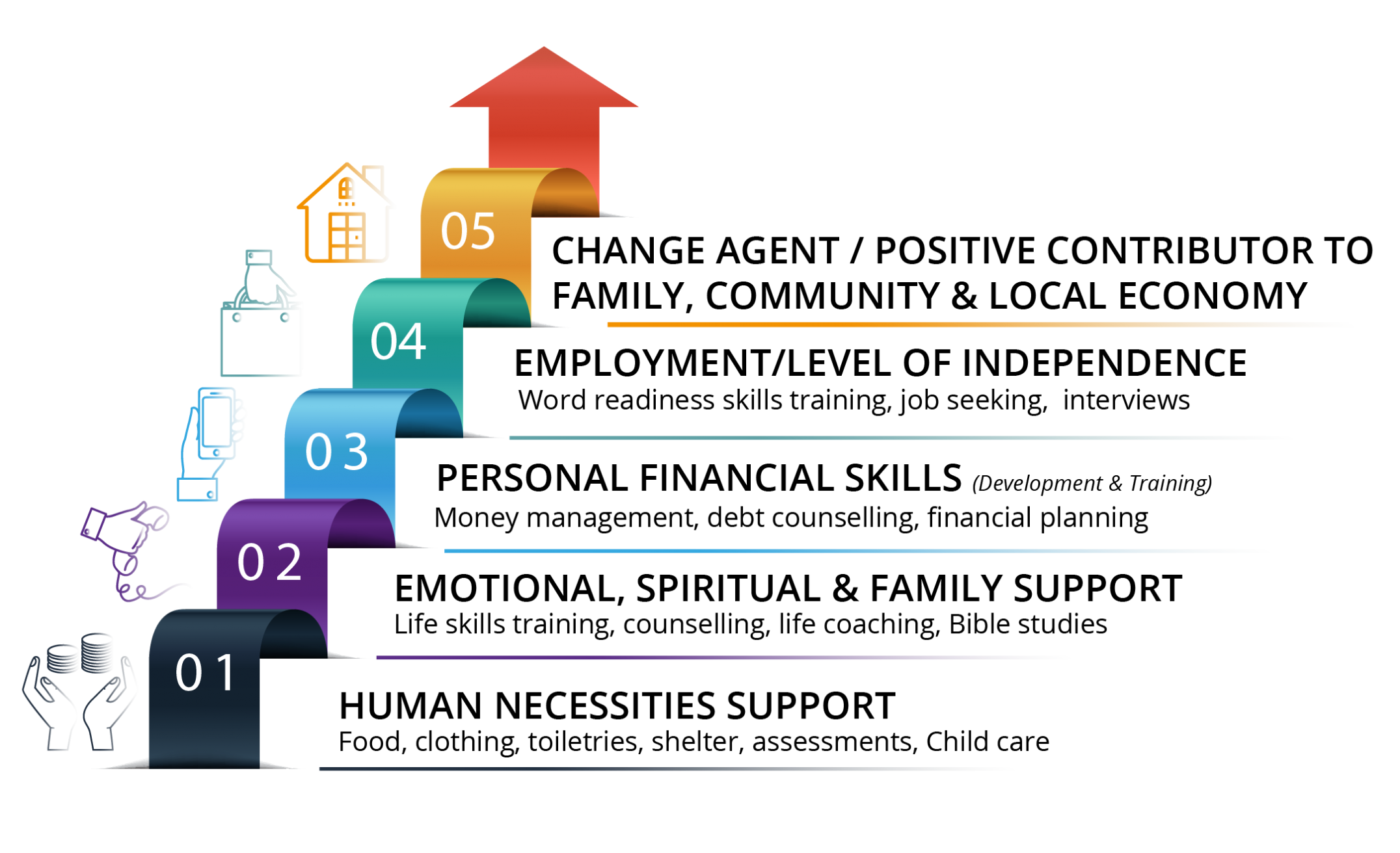 Legacy Community Service's programs are designed to lead people, step by step, from poverty and despair to becoming self-sufficient contributing members of their community.